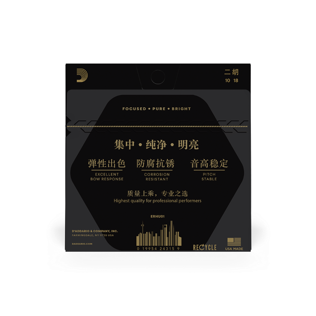 Le premier jeu de cordes D'Addario conçu pour les instruments traditionnels chinois. Le jeu de cordes ERHU01 a été élaboré pour offrir tous les sons bien définis, brillants et cristallins que les joueurs d'erhu professionnels recherchent.