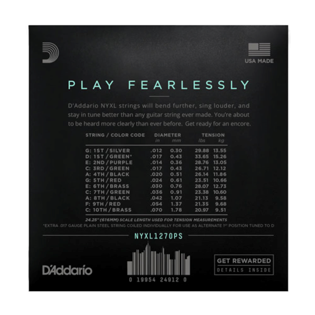 D'Addario NICKEL Medium/Blues-Jazz Rock, 3ème corde avec filet, 11-49