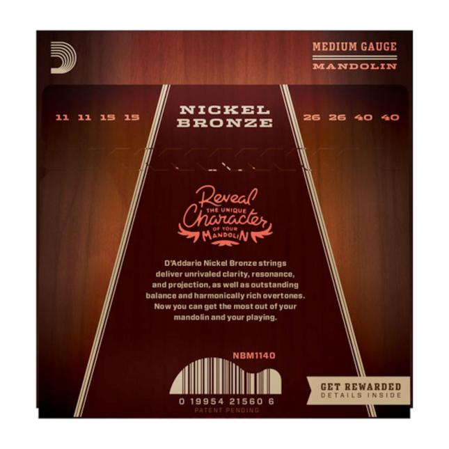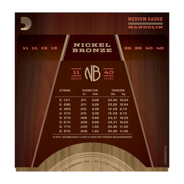 Caractéristiques Cordes pour mandoline D'Addario NBM1140 nickel bronze, Medium, 11-40