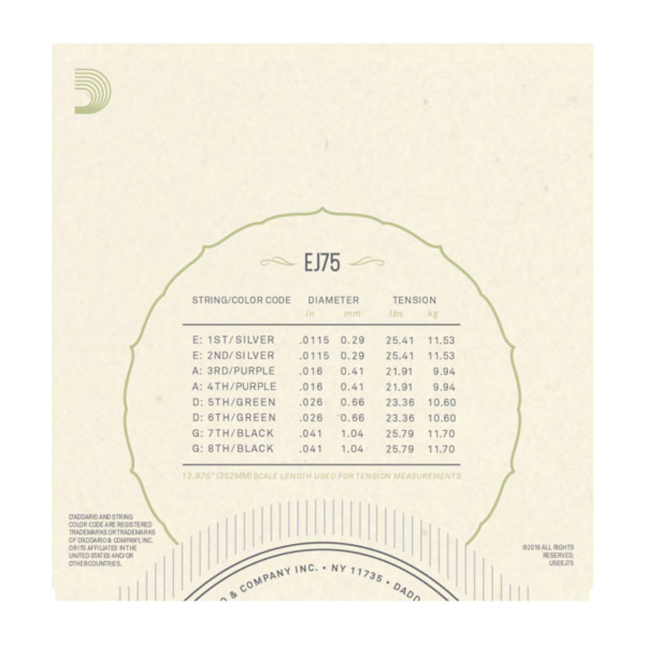 EJ75, le jeu de mandolines le plus lourd de D'Addario, a été conçu en collaboration avec Ronnie McCoury, qui a une conduite difficile, le style percussif exige une tension accrue pour un volume maximum. Construction Loopend pour un ajustement universel.