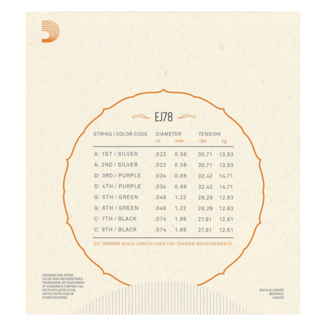 D'Addario NICKEL Medium/Blues-Jazz Rock, 3ème corde avec filet, 11-49