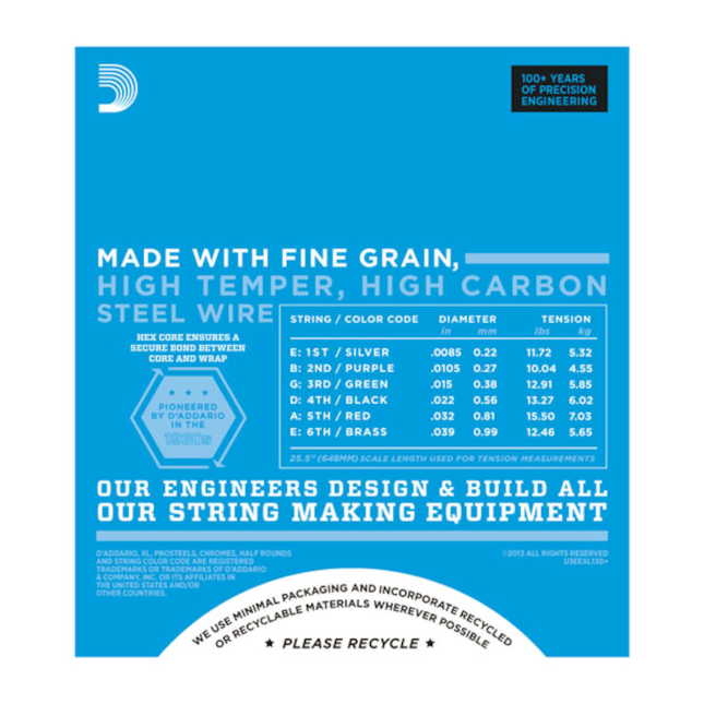 Les XL filées au nickel, cordes pour guitare électrique les plus populaires de D'Addario, sont faites d'un fil d'acier plaqué nickel filé avec précision autour d'une âme en acier carboné soigneusement usinée.