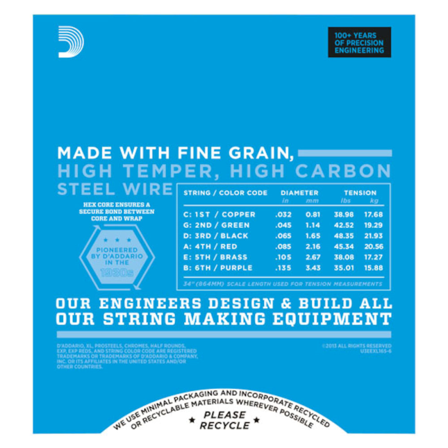 Le EXL165-6 est la version 6 cordes du tirant hybride le plus populaire de cordes pour basse proposé par D'Addario.