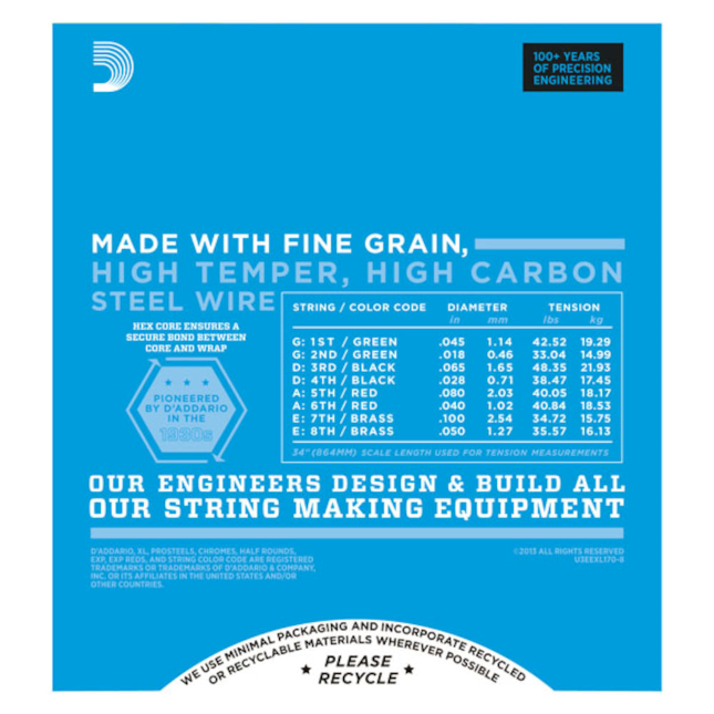 Le EXL170-8 est la version 8 cordes du best-seller de la gamme de cordes D'Addario pour basse.