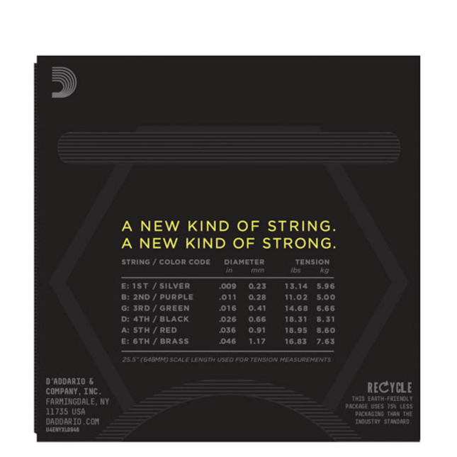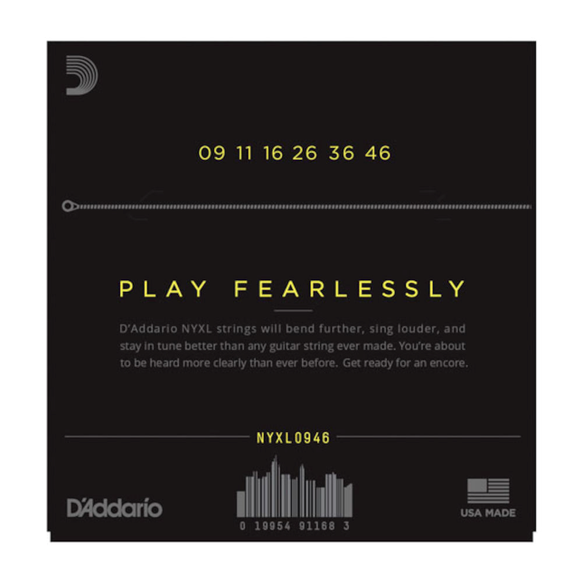 Les cordes pour guitare D’Addario NYXL sont plus solides, plus puissantes, et tiennent mieux l'accord que toutes les autres cordes que vous avez pu essayer auparavant. Imaginés, perfectionnés et fabriqués par D’Addario dans l'État de New York, leur nouvelle âme révolutionnaire ultra-résistante en acier à haute teneur en carbone et leur alliage en acier offrent un maximum de liberté, de confiance et de puissance. Les NYXL sont plus robustes et restent accordées 131 % plus longtemps que des cordes standard grâce à l'usinage complètement réinventé de leur filet, ainsi qu'au système révolutionnaire de « fusion par torsion » des cordes en acier. Le filage plaqué nickel reformulé possède des propriétés magnétiques supérieures et fournit ainsi plus de puissance et une réponse améliorée dans les médiums, avec davantage de présence et de crunch.