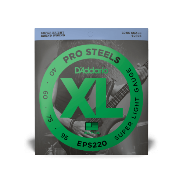 Le jeu D'Addario EPS220 offre aux musiciens une meilleure flexibilité dans le jeu tout en restant un compromis idéal entre des aigus incisifs, des graves percutants, et une durée de vie extra-longue. Convient aux basses « long scale » pour un manche pouvant mesurer jusqu'à 36 1/4" (92,07 cm). Les ProSteels sont les cordes pour basses les plus brillantes et magnétiques proposées par D'Addario. Un alliage d'acier spécifique permet d'obtenir des harmoniques aiguës riches et brillantes avec des graves profonds et compacts qui fonctionnent en tandem pour obtenir le son « piano » tellement recherché par les joueurs de cordes acier. Parfaites pour le jeu au doigt comme pour un jeu agressif au médiator, les ProSteels vous donnent l'avantage et l'énergie nécessaire pour faire ressortir le son de votre instrument.