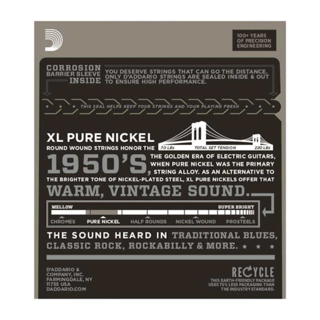 Les cordes D'Addario XL en nickel pur nous ramènent aux années 50, lorsque le nickel était le principal alliage utilisé à la fabrication de cordes pour guitare électrique.