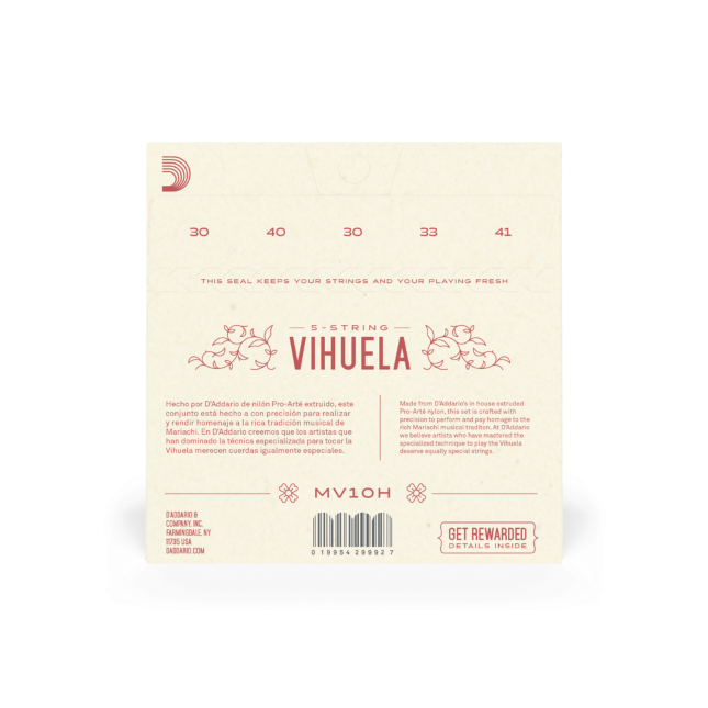 Made from D’Addario’s in house extruded Pro-Arte nylon, this set is crafted with precision to perform and pay homage to the rich Mariachi musical tradition. At D’Addario we believe artists who have mastered the specialized technique to play the Vihuela deserve equally special strings.