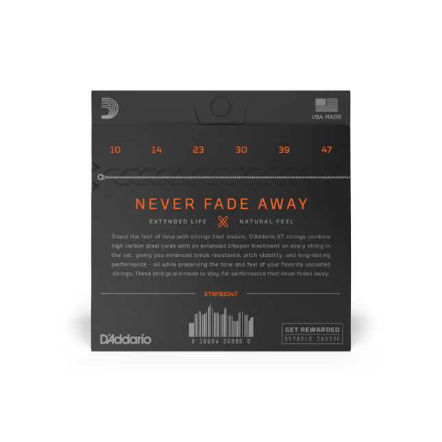 Les cordes D'Addario XT sont fabriquées avec des âmes en acier à haute teneur en carbone et bénéficient d'un revêtement conçu pour prolonger leur durée de vie afin de vous offrir une meilleure résistance à la casse, une stabilité d'accordage supérieure, ainsi que des performances plus durables. Tout cela sans altérer le toucher et les sonorités de vos cordes sans revêtement favorites. Ces cordes sont conçues pour durer, avec des performances qui ne faiblissent jamais.