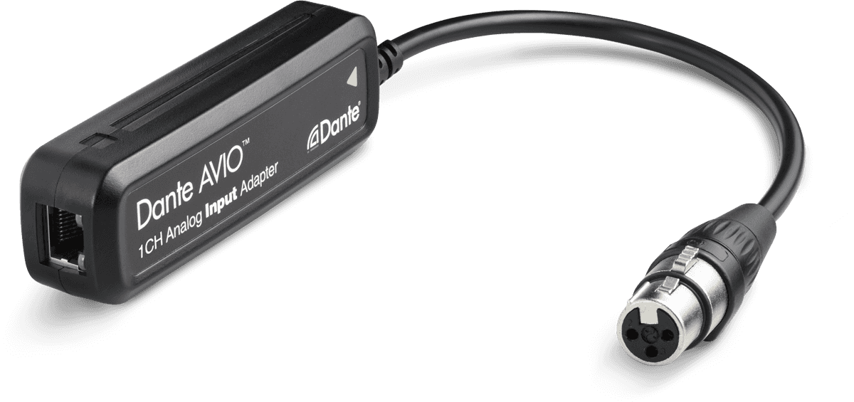 Les entrées analogiques Dante AVIO vous permettent d'utiliser les sources audio analogiques de niveau ligne que vous possédez déjà pour alimenter n'importe quel système connecté à Dante. N'abandonnez pas les consoles de mixage, les micros sans fil et autres sources analogiques, adaptez-les au monde des réseaux audio avec Dante AVIO. Disponible en version 1 et 2 canaux.