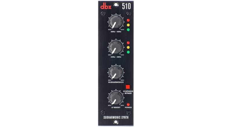 Le générateur de sub-harmoniques dbx 510 est un processeur de référence depuis de nombreuses années permettant d’accroitre la perception de basses fréquences dans de nombreuses applications DJ, théâtre, mixage film, musique, live et broadcast. Ce procédé de synthèse produit une nouveau signal modélisé exactement un octave en-dessous de l’audio original. La séparation en deux bandes de synthèse sub-harmoniques propres au 510 permet les meilleures combinaisons de contrôle pour un réglage précis et fin, tandis que le circuit indépendant “Low Frequency Boost” permet de gérer d’une manière optimale le niveau des fréquences sub-basses. Le 510 apporte à la musique des basses solides et ajoute du punch en synthétisant les dernières octaves des basses fréquences. Sa conception garantit une non-interférence sur les fréquences hautes et médiums, même lorsqu'un maximum de synthèse est appliqué.