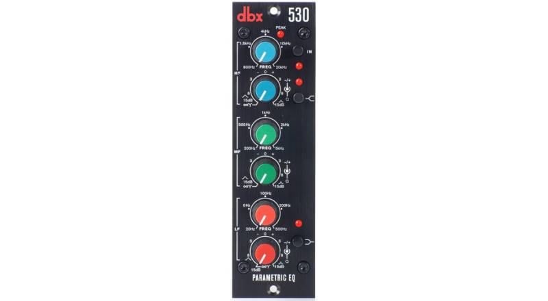 Le dbx 530 Parametric EQ apporte un niveau unique de flexibilité d’égalisation au populaire format rack 500. Inspiré du classique dbx 905, il apporte toute la tradition des traitements analogiques dbx dans un correcteur 3 bandes totalement paramétriques. Chaque bande dispose de son réglage d’efficacité (Q) et de niveau (15 dB). Dans le cas où des fréquences doivent être supprimées, chaque bande peut être commutée en mode “infinite notch” (réjecteur). Les bandes graves et aigües peuvent également être commutées en mode plateau.