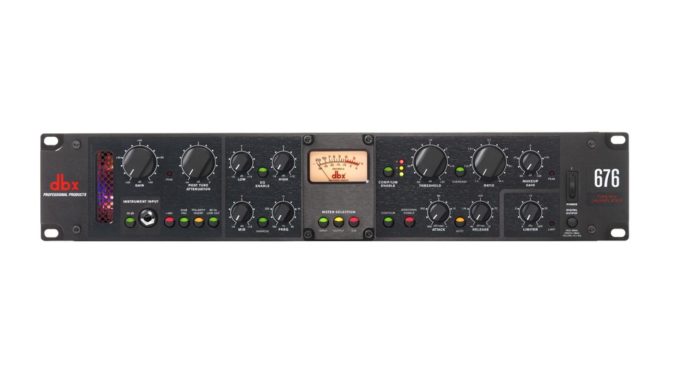 Le préampli microphone 676 Tube Mic Pre Channel Strip rassemble dans un unique appareil tout le savoir-faire du traitement analogique qui a fait la réputation de dbx depuis ces 40 dernières années. Le 676 dispose d’une section de préamplification micro ou instrument à tube en Classe A, dotée d’une alimentation haute tension de 250 V permettant d’obtenir un signal aussi transparent que possible ou au contraire chargé de distorsion suivant vos besoins. Il intègre en plus un compresseur/limiteur inspiré du célèbre modèle dbx162SL et un correcteur paramétrique 3 bandes à fréquence variable sur le médium. Le 676 est à lui seul une tranche de console complète qui procure aux professionnels de l’enregistrement et des applications live tous les traitements nécessaires à une préamplification de qualité grâce à sa contruction à base de composants haut de gamme, ses contrôles de type vintage, son affichage de niveau précis et sa carte de sortie numérique optionnelle.