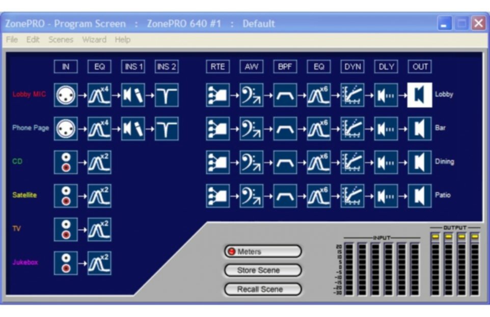 Les Zone Pro se paramètrent à partir d’un ordinateur PC pour ensuite fonctionner de façon autonome. Le rappel, la mise en service et le réglage des différents programmes (source, niveau, affectation de programme) s’effectuent facilement grâce à des boutons de commandes dédiés en face avant (uniquement pour le 640 et le 1260, les modèles 641 et 1261 n’offrant aucun contrôle en face avant). Ces mêmes programmes peuvent être aussi rappelés grâce à des télécommandes murales encastrables (voir page ci-contre).