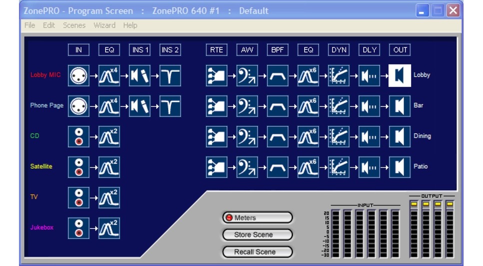 Les Zone Pro se paramètrent à partir d’un ordinateur PC pour ensuite fonctionner de façon autonome. Le rappel, la mise en service et le réglage des différents programmes (source, niveau, affectation de programme) s’effectuent facilement grâce à des boutons de commandes dédiés en face avant (uniquement pour le 640 et le 1260, les modèles 641 et 1261 n’offrant aucun contrôle en face avant). Ces mêmes programmes peuvent être aussi rappelés grâce à des télécommandes murales encastrables (voir page ci-contre).
