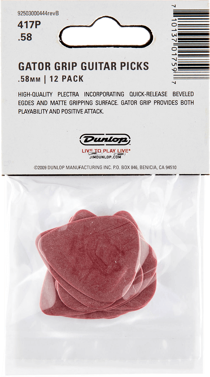 DUNLOP 417P058 Gator Grip 0,58mm sachet de 12 médiators