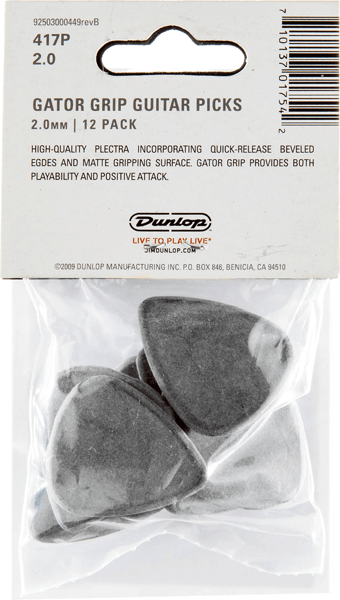 Dunlop 417P200 Médiators Gator Grip Player's Pack de 12, 1,50mm