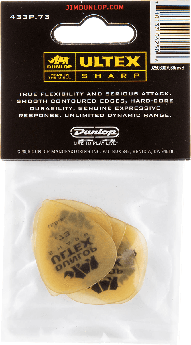 Dunlop 433P73 Médiators Sharp Player's Pack de 6, 0,73mm