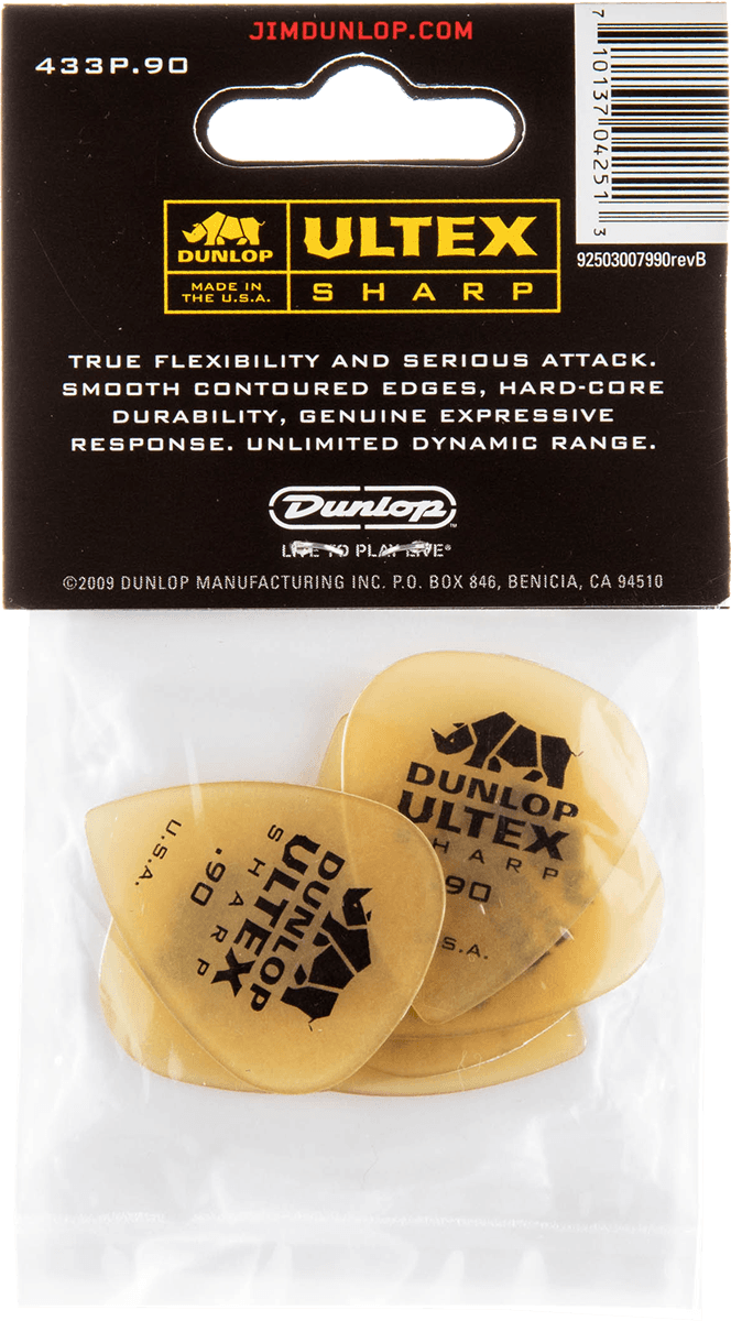 DUNLOP 433P90 Médiators Sharp Player's Pack de 6, 0,90mm