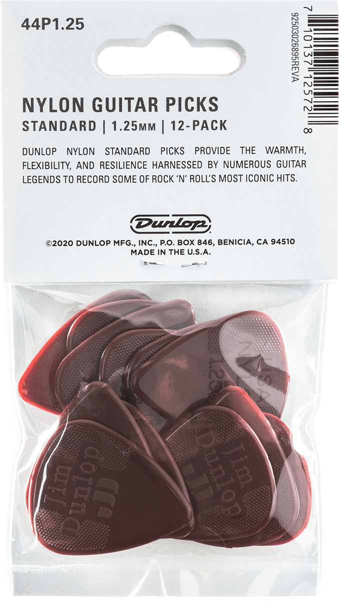 DUNLOP 44P125 Médiators Nylon Standard 1,25 mm pack de 12