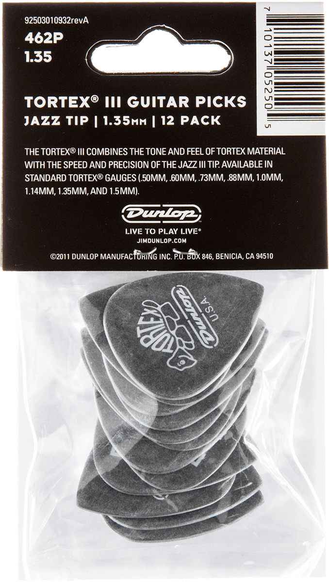 DUNLOP 462P135 Médiator T3 Player's Pack de 12, 1,35mm