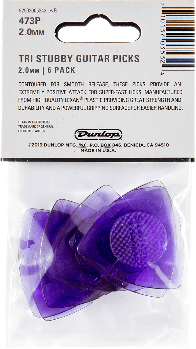 Dunlop 473P200 Médiators Tri Stubby Player's Pack de 6, 2,00mm