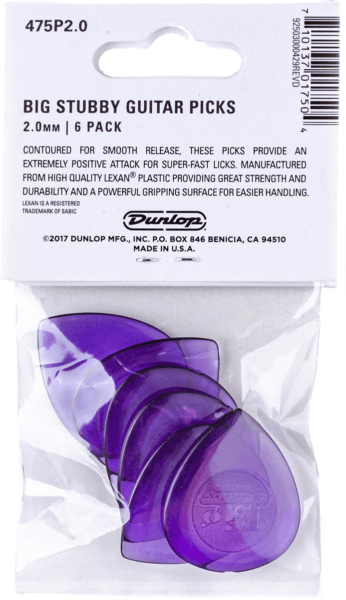 DUNLOP 475P2 Médiators Big Stubby Player's Pack de 6, 2,00mm