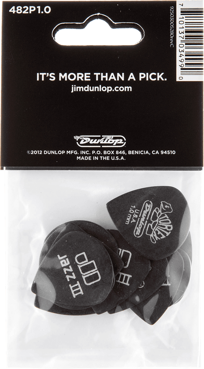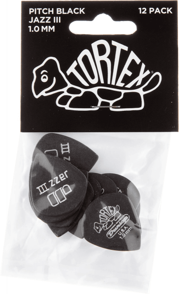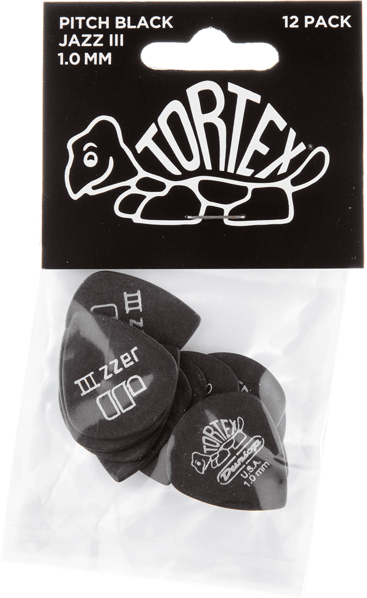 DUNLOP 482P100 Médiators Pitch Black Jazz III Player's Pack de 12, 1,00mm