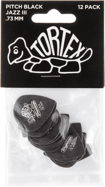 Dunlop 482P73 Médiators Pitch Black Jazz III Player's Pack de 12, 0,73mm