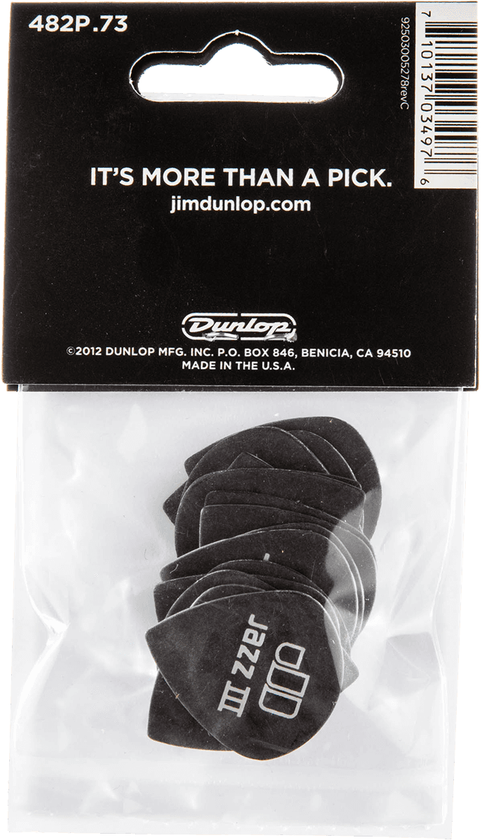 DUNLOP 482P73 Médiators Pitch Black Jazz III Player's Pack de 12, 0,73mm
