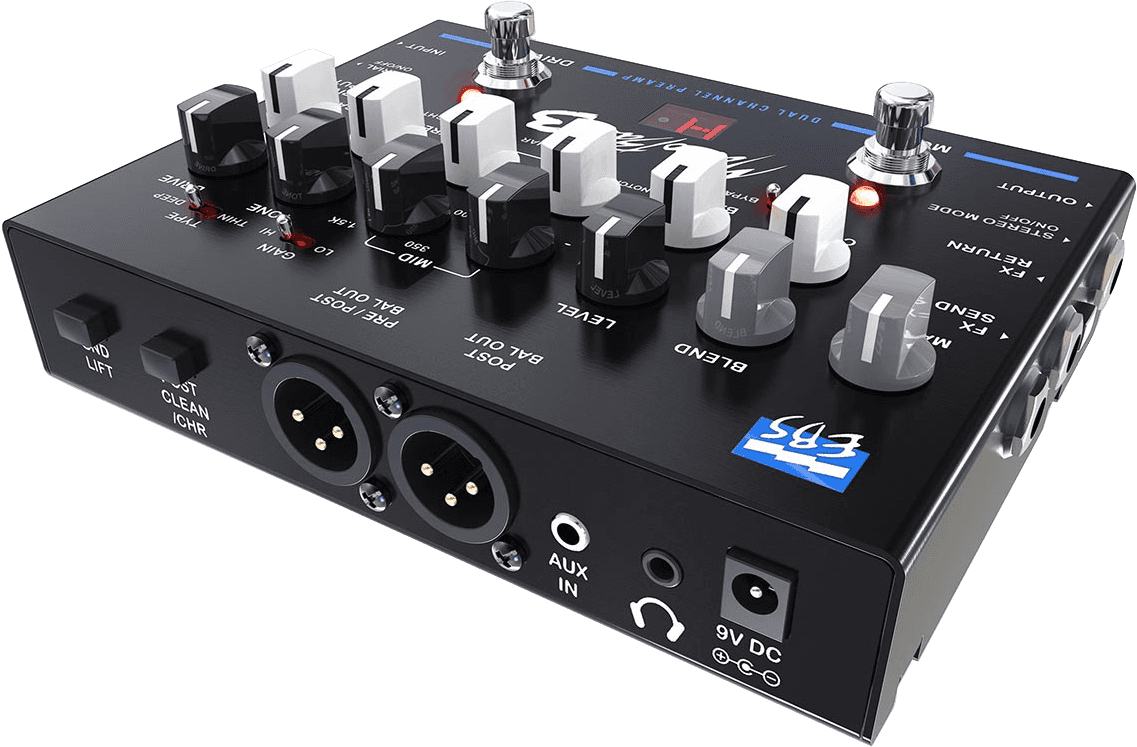 Capable d'accepter toutes les basses grâce à son impédance de 10 Mohms, la section de préamplification comporte deux canaux, Clean et Drive, qu'il est possible de faire fonctionner en série ou en parallèle. Les deux sorties XLR peuvent être employées de deux manières : soit comme sorties indépendantes, ce qui permet de récupérer un signal post EQ sur l'une, pré EQ sur l'autre, soit comme sorties stéréo, en particulier lorsque la boucle d'effet est utilisée en mode stéréo.