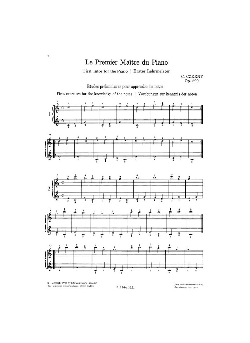 Editions H. Lemoine CZERNY LE PREMIER MAITRE OP 599