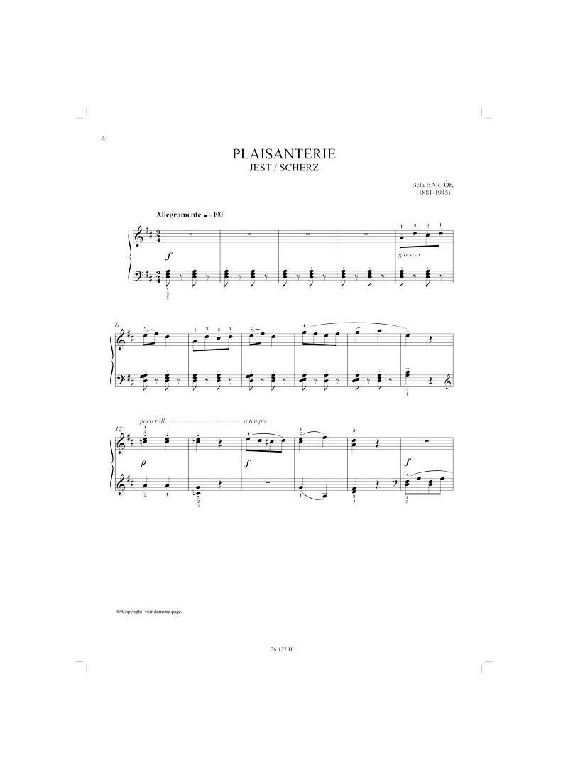 BACH : Prélude BWV 927 - BARTOK : Plaisanterie - Ronde - BEETHOVEN : Bagatelle - Sonatine en Fa Majeur - CHOSTAKOVITCH : La Poupée mécanique - CLEMENTI : Sonatine en Sol Majeur Op.36 n°2 (1e mvt) - DEBUSSY : Le Petit nègre - DIABELLI : Rondo - Sonatine en Sol Majeur Op.151 (1e mvt) - GRIEG : Valse Op.12 n° 2 - HAENDEL : Courante - HAYDN : Vivace - HELLER : Etude n°7 Op.47 - HINDEMITH : Marche - HUBEAU : Chanson américaine - KABALEVSKI : Novelette - Valse lente - KHATCHATOURIAN : Scherzo - KUHLAU : Rondo-Vivace - Sonatine n°1 en Ut Majeur Op.20 - LEVY : Espiègle - Tambourin - LUTOSLAWSKI : Eh! C'est de Cracovie que je viens - MOZART : Sonate en Ut Majeur KV 545 - Sonatine viennoise - PROKOFIEV : Marche Op.65 - ROSSIGNOL : Parade - SCHUMANN : Le Gai laboureur - Pauvre orpheline - Sicilienne Op.55 n°1 - Sonate pour la jeunesse Op.118 a - VILLA-LOBOS : E a Princezinha Dançava - WEBER : Valse-Ländler - Valse en Sol Majeur