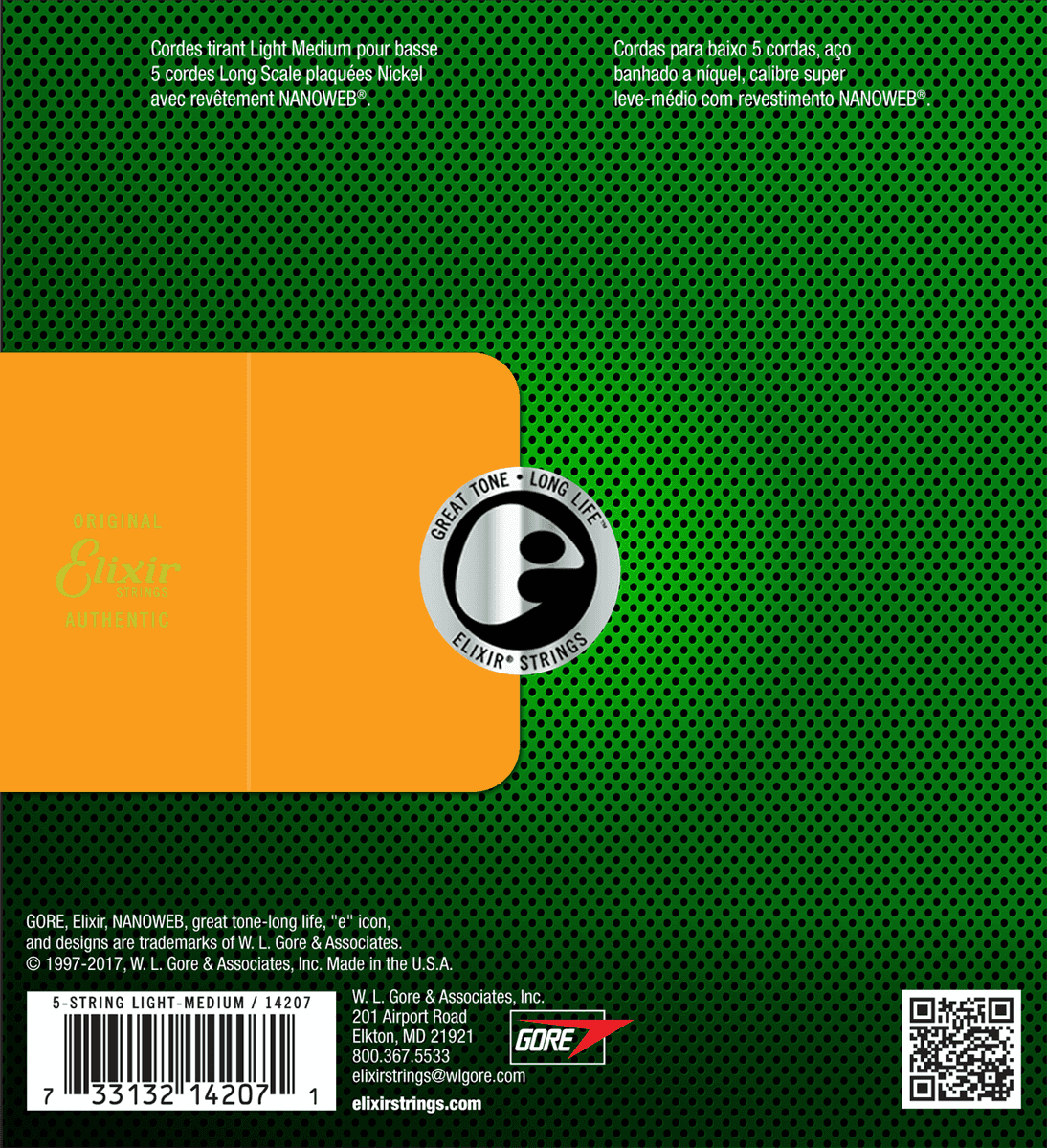 Elixir 14207 BASSES ELECTRIQUES Nanoweb Nickel 5 Cordes Light/Medium 45/135 - Image principale