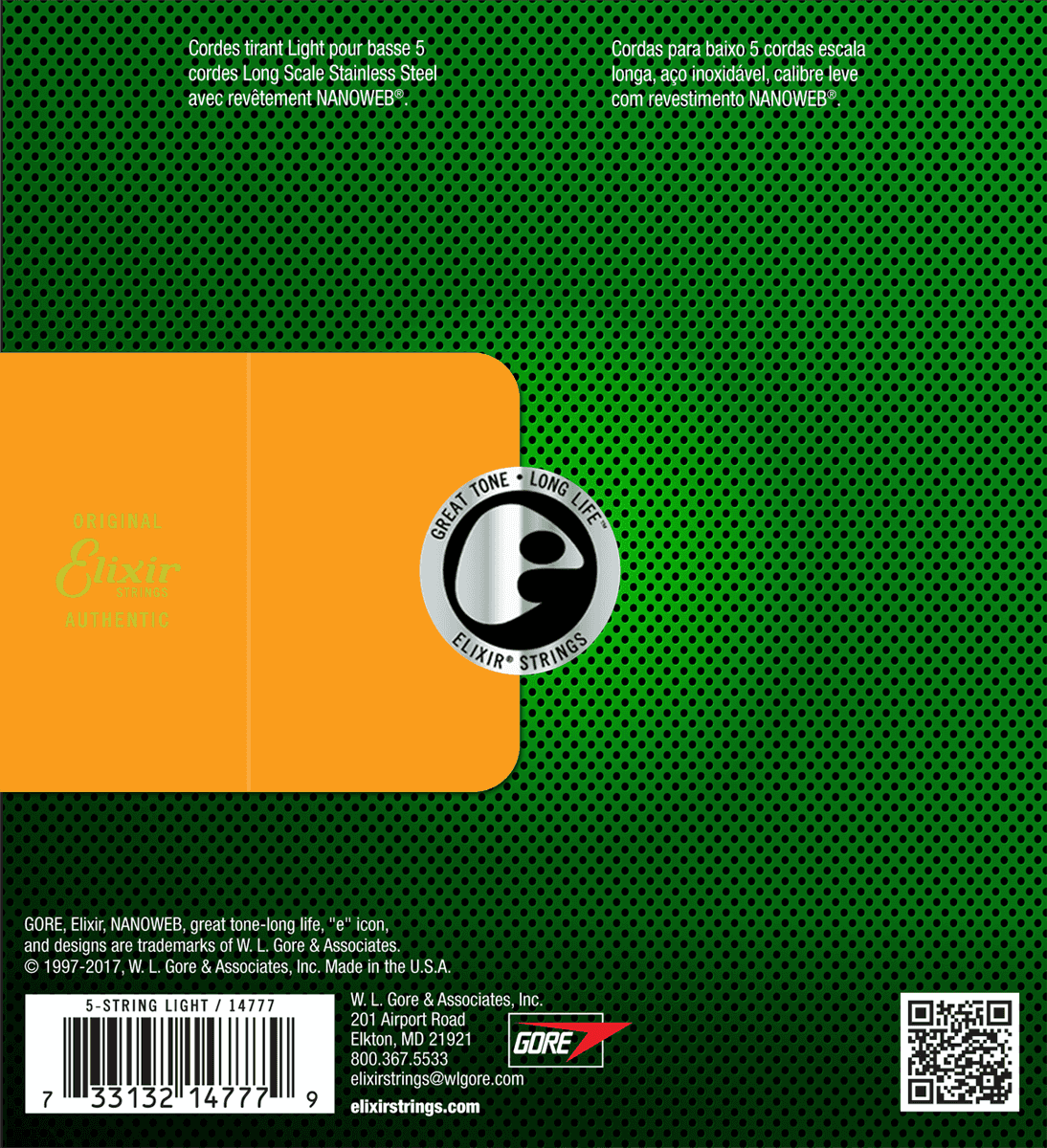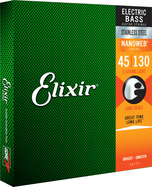 Elixir 14777 BASSES ELECTRIQUES Nanoweb Stainless Steel 5 Cordes Med Light 45/130  - Image principale