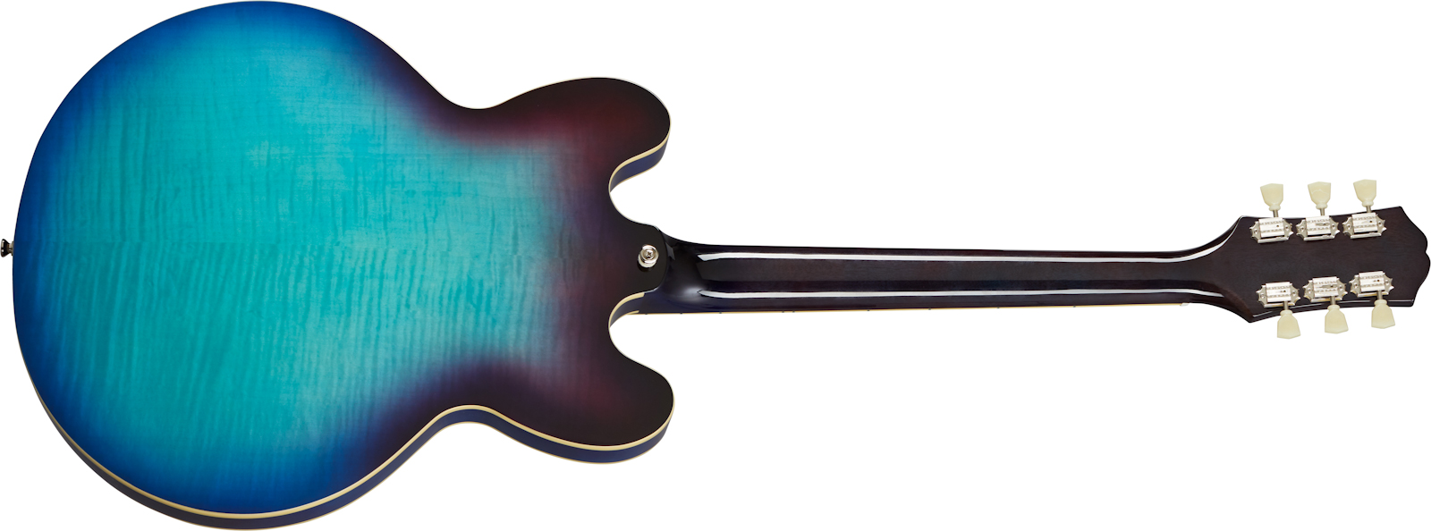 - EPIPHONE Inspired By Original ES-335 Figured - Guitare électrique demi-caisse (avec bloc central Érable) - Fabriquée en Chine - Table Érable laminé - Caisse Érable laminé - Manche collé Acajou - Profil 1960s SlimTaper C - Touche Palissandre, 22x frettes medium-jumbo - Diapason 24.75" - Radius 12" - Largeur manche 1° frette 1.68" - 4.27 cm - Micros double bobinage Epiphone Alnico Classic PRO (aimants Alnico 2) - 1x volume par micro - 1x tonalité par micro - Sélecteur micros 3 positions - Chevalet Epiphone LockTone Tune-O-Matic - Cordier Epiphone LockTone Stop Bar - Mécaniques Grover Rotomatic, 18:1 Ratio - Finition brillant - Tirants de cordes recommandés en accord standard 10.46