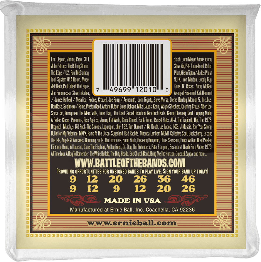 Ernie Ball 2010 Acoustiques Earthwood 80/20 Bronze Light 12 cordes 09/46