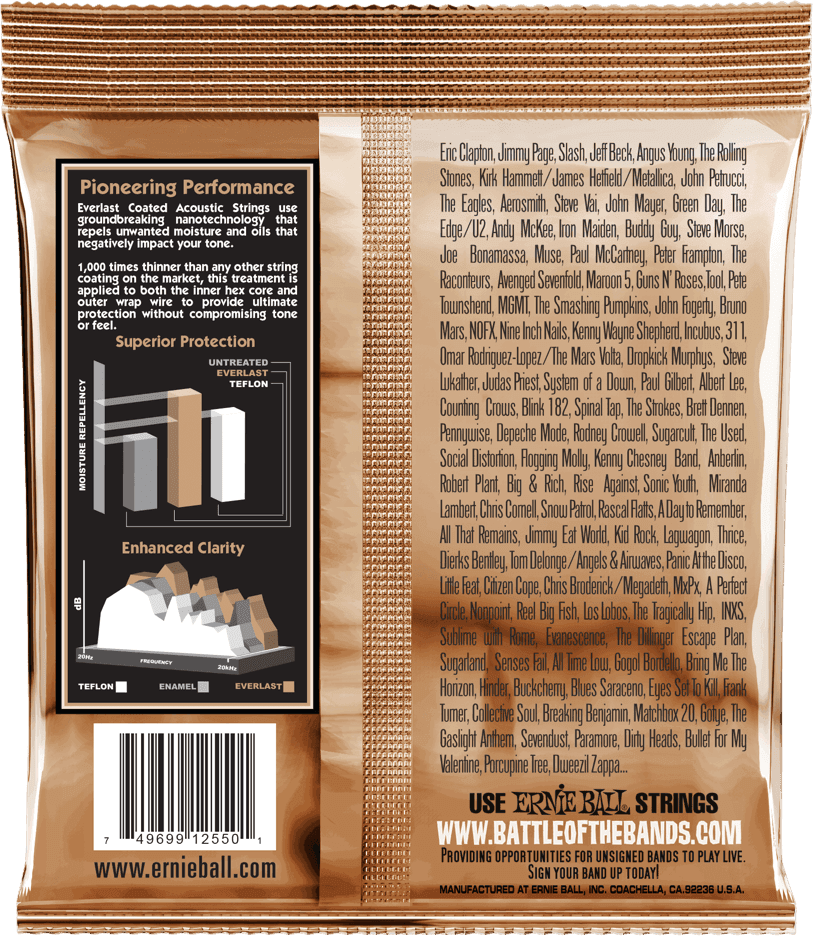 Ernie Ball 2550 Acoustiques Everlast Coated Phosphor Bronze Extra light 10/50 - Image n°3