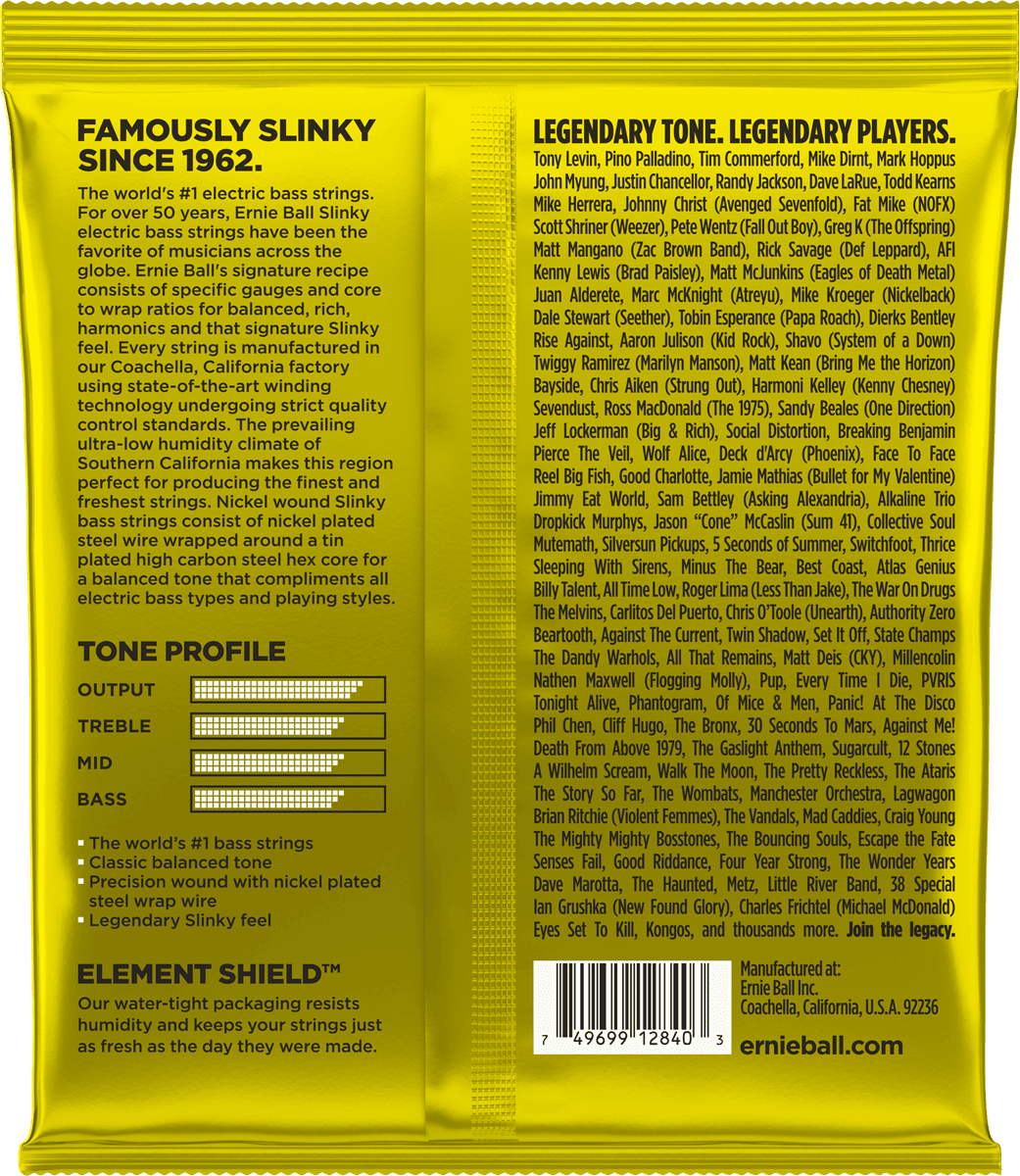 Les cordes les plus plébiscitées des bassistes. Les Slinky nickel wound sont fabriquées à partir de matériaux de première qualité et répondent à un cahier des charges très strict pour vous offrir un son brillant riche en harmoniques.