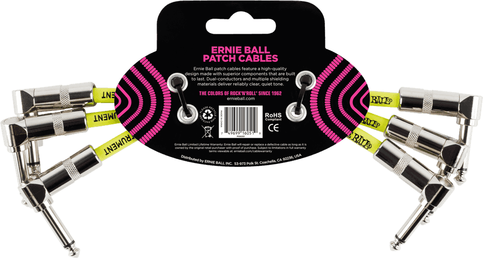 Ernie Ball 6063 Jack/jack coudé 7,62m 4 couleurs Gaine Tissée