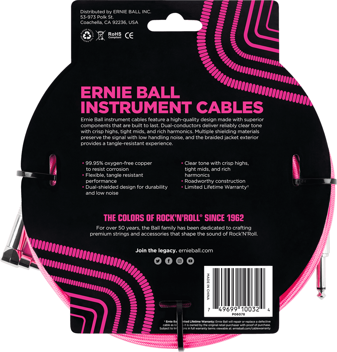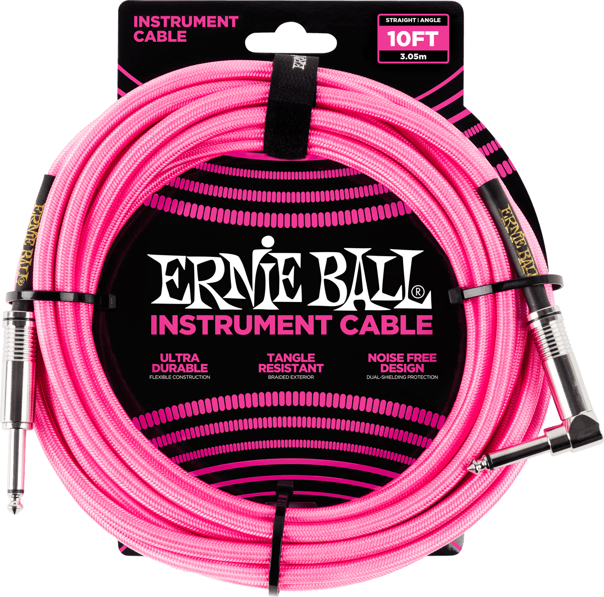 Ernie Ball 6078 Jack/jack coudé 3m rose fluo Gaine Tissée