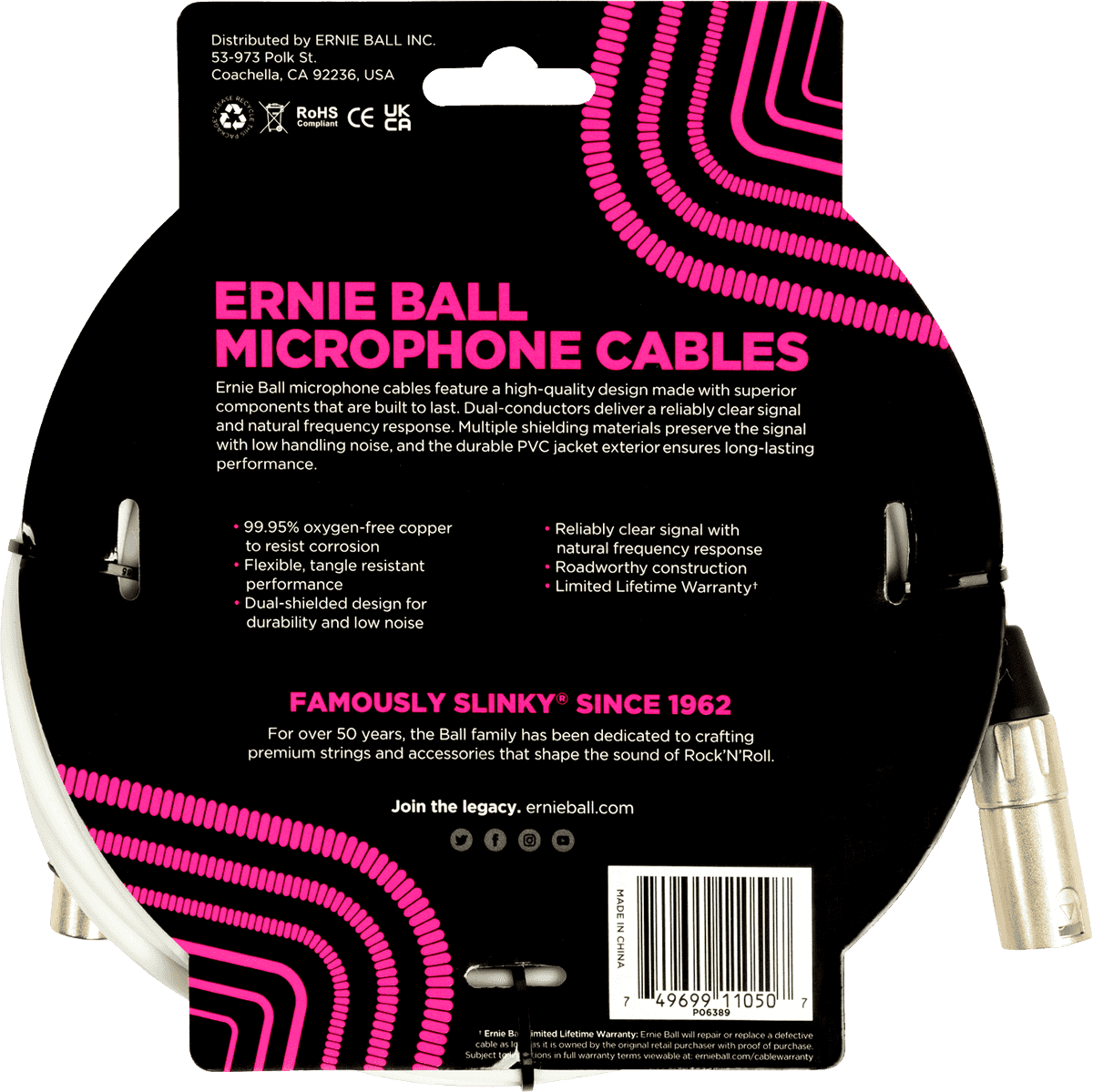 ERNIE BALL 6389 XLR mâle/XLR fem 6m blanc