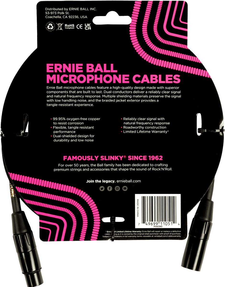 ERNIE BALL 6390 XLR mâle/XLR fem 1,5m noir