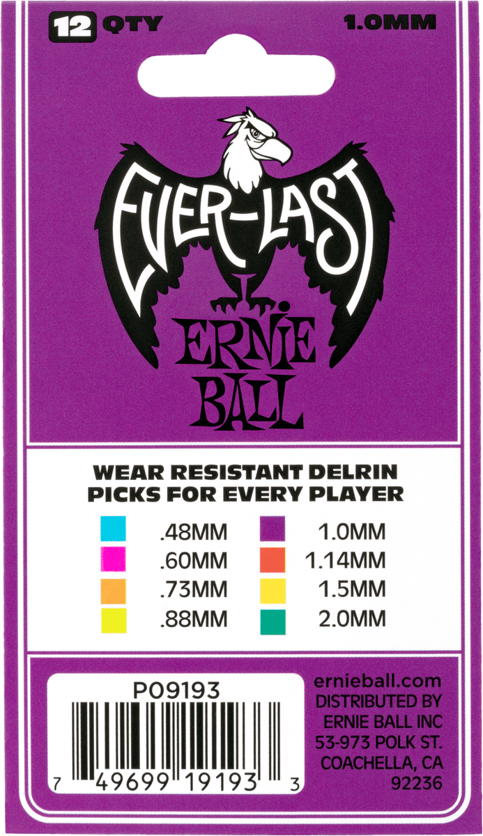 ERNIE BALL 9193 Médiators Everlast Sachet de 12 violet 1mm