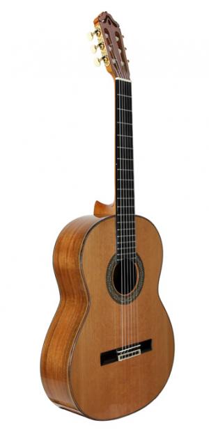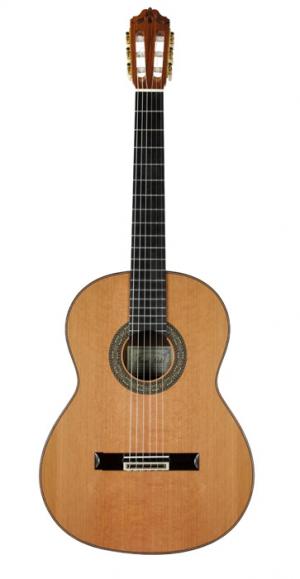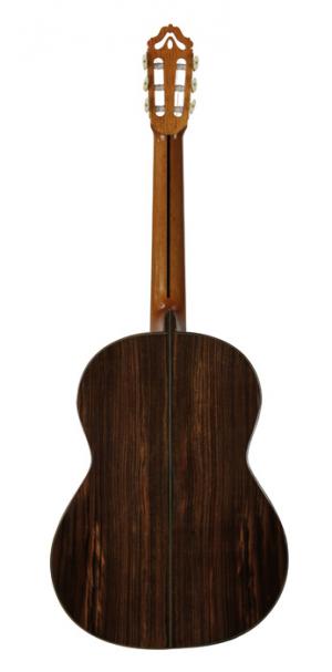 MOD.12, table cèdre massif, fond & éclisses palissandre brésilien massif, manche avec insert fibre de carbone, touche ébène, cordes Savarez Alliance Carbon, avec soft case.