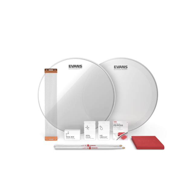 Si vous souhaitez tirer le meilleur de votre caisse claire, il est indispensable de l'entretenir régulièrement. Avec ces kits, EVANS vous fournit les outils, les composants et les instructions pour modifier, régler et procéder à l'entretien général de l'élément le plus essentiel de votre batterie. Éliminez les harmoniques indésirables et profitez d'un sustain maîtrisé avec la peau HD Dry, idéalement combinée avec une peau Snareside 300 et le timbre pour caisse claire PureSound Blaster à 20 brins inclus. Les kits EVANS Tune Up pour caisse claire regorgent de fonctionnalité, de variété et de polyvalence, et contiennent tout le nécessaire - il ne manque que votre instrument !