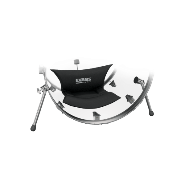Le pad EVANS EQ est un muffle pour grosse caisse extrêmement efficace qui se fixe sur la bas du fût de grosse caisse grâce à des attaches velcro. Le pad sur charnières rebondit sur la peau, laissant ainsi un court sustain avant de revenir pour atténuer la vibration. Un pad plus petit peut être utilisé du côté opposé pour les batteries plus petites ou pour une atténuation minime.