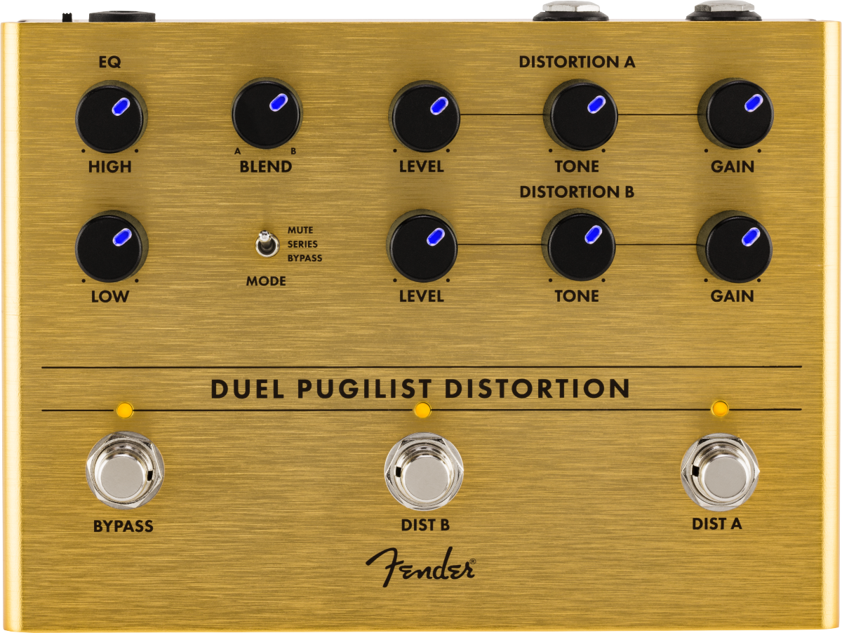La Duel Pugilist est une création totalement originale réalisée par les gourous du son de chez Fender. Son châssis est fait en aluminium anodisé, léger mais robuste, et ses potentiomètres rétro-éclairés par LED vous permettent de voir vos réglages d’un coup d’œil sur une scène obscure.