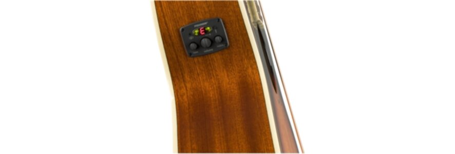 For amplified performances. the onboard Fishman® preamp system offers crystal-clear sound along with volume, bass and treble controls to precisely shape your tone. The luxurious flame maple top enhances articulation, lending a crisp attack to the mahogany back and sides’ rich, warm voice.
