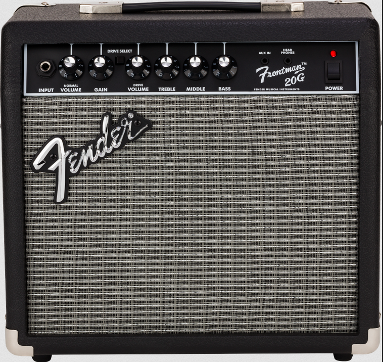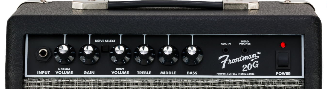 Le Frontman 20G vous fait bénéficier de l’esthétique familière de Fender et de la meilleure qualité sonore de sa catégorie, à un tarif qui convient à tous les budgets. Le 20G présente un design simple et intuitif que toutes et tous, des débutants(es) aux professionnels(les), comprendront immédiatement. Il propose un canal clair avec un réglage de volume et trois potentiomètres d’égalisation offrant une grande polyvalence sonore, ainsi qu’un canal Drive commutable, qui dispose de son propre réglage de volume. L’ampli comprend également une entrée auxiliaire sur mini-jack de 3,5 mm pour jouer sur vos morceaux préférés, et une sortie casque pour vous entraîner sans déranger votre entourage. Le Frontman délivre aussi 20 watts au travers d’un haut-parleur Special Design de 8” (203 mm), lequel vous fait bénéficier d’un super son quand vous vous entraînez ou jouez avec vos amis(es).